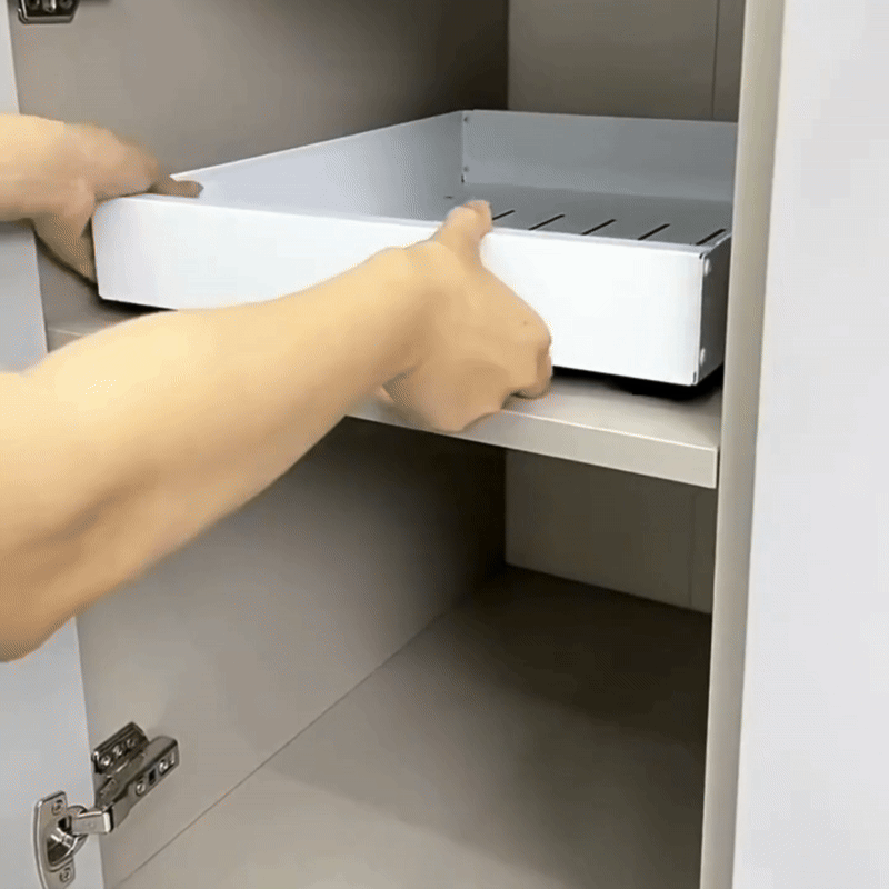 Chaos in the kitchen cupboards? The extendable kitchen cupboard organizer instantly creates more space and keeps food, spices and kitchen utensils neatly organized. With its pull-out drawers, you’ll have everything to hand and save valuable time when cooking.