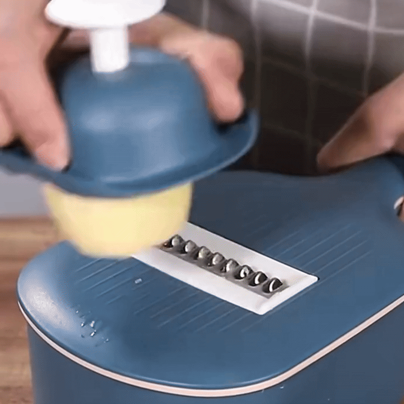 The multifunctional vegetable slicer with collecting tray is the perfect kitchen helper for cutting, grating and slicing fruit and vegetables quickly and efficiently. This practical appliance saves you time and effort when preparing ingredients for salads, casseroles and many other dishes. The collection container ensures that your kitchen stays clean and you always get the perfect portion.