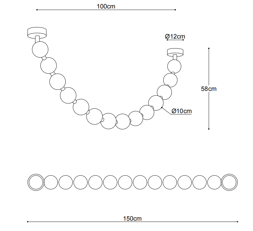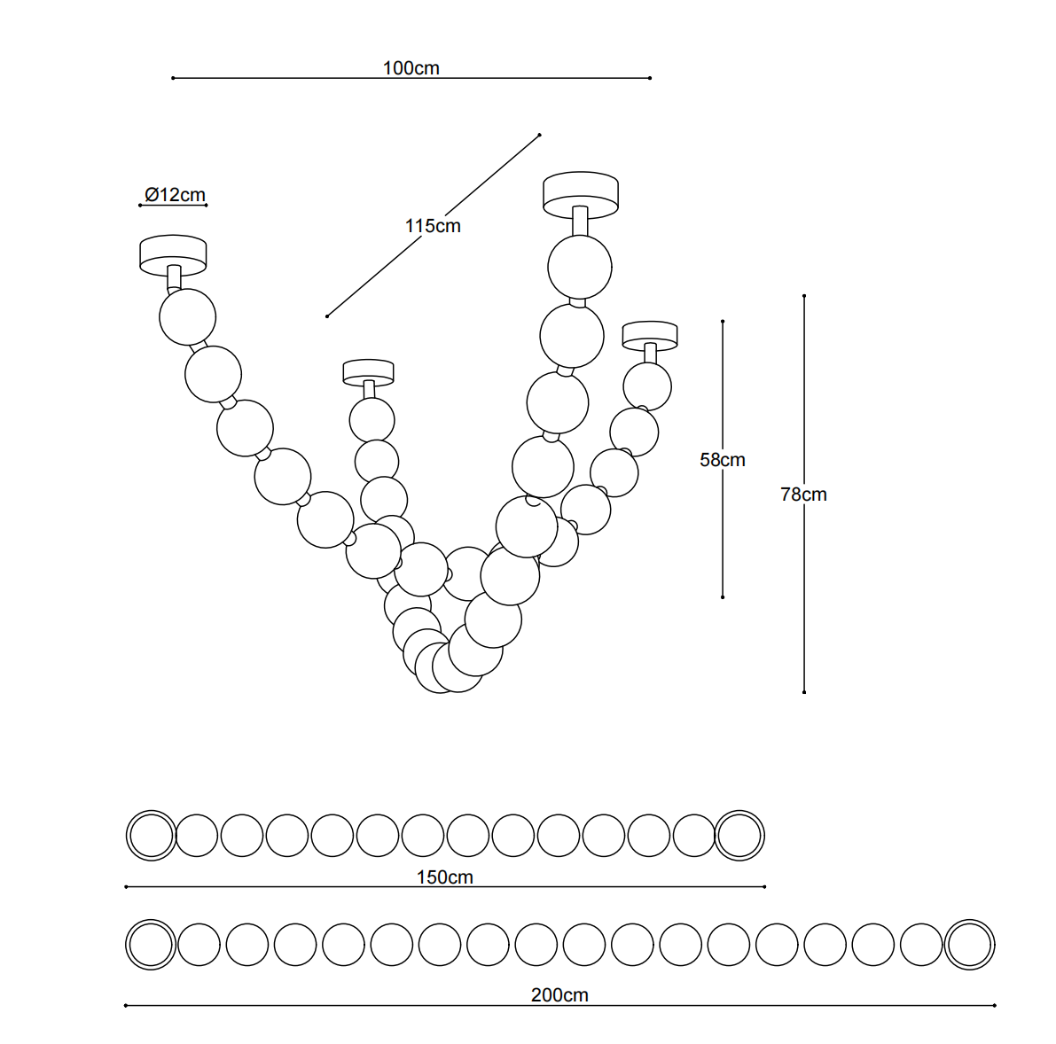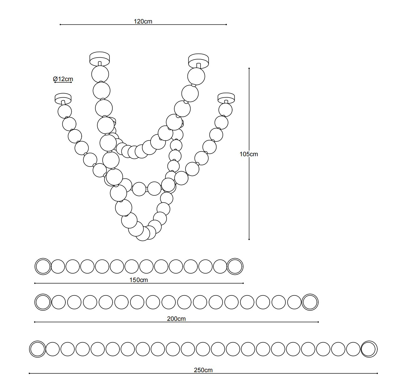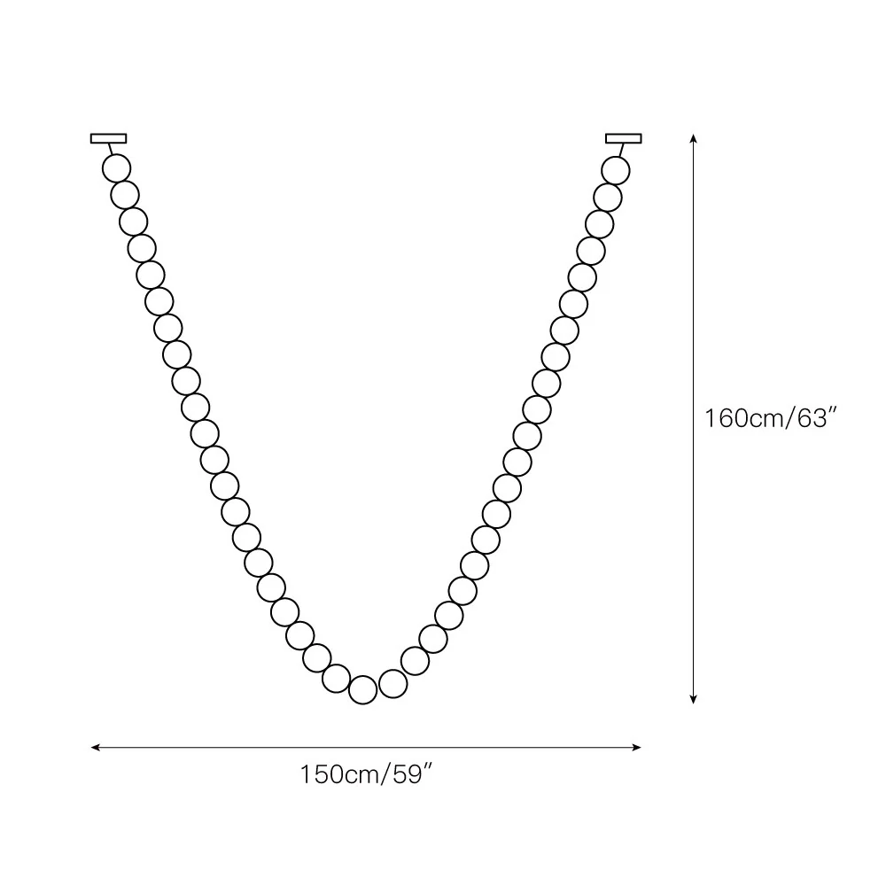 Indulge in the exquisite beauty of our Pearl Necklace Balls Chandelier. Crafted with acrylic and gold joints, this piece exudes luxury. Hidden LED lights offer endless possibilities for hanging and decorating, allowing you to create a truly unique and elegant ambiance. Elevate your space with this sophisticated and exclusive chandelier.