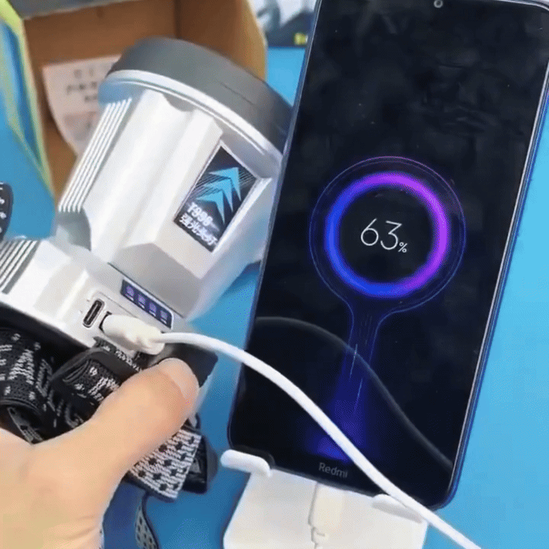 Wide – Beam Led Headlamp with Power Bank Function and Usb Charging Port