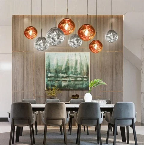An elegant statement of eye-catching, architectural design, featuring a volcanic look with a seamless array of light. In modern spaces, the Feya Volcanic Pendant Light adds other-wordly style.