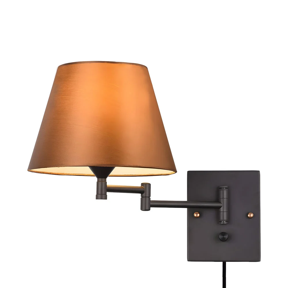 • The fabric shade, available in linen color, brown, or white, complements the black finish, adding a touch of sophistication to any space. Its double-jointed swing arm ensures flexibility, while the included E26 LED bulb emits a warm white light, creating a cozy atmosphere. This Plug-In Swing Arm Wall Lamp is a timeless addition that exudes charm and sophistication in any setting.