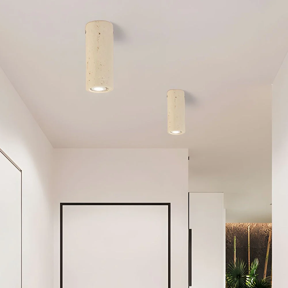 - This indoor ceiling light is crafted from natural yellow travertine, a unique stone color that adds a touch of natural elegance to any hallway, or entryway. The long, tube shape of the lamp is simple and natural, exuding a timeless appeal. Each fixture is carefully hand-polished to highlight the hard texture and inherent beauty of the travertine. The long, sleek tube design embodies simplicity and sophistication that complements contemporary decor. We offer two lengths of long tube ceiling lights for you to choose from. You can install it individually or choose a combination of several to bring you an excellent lighting and decorative experience.