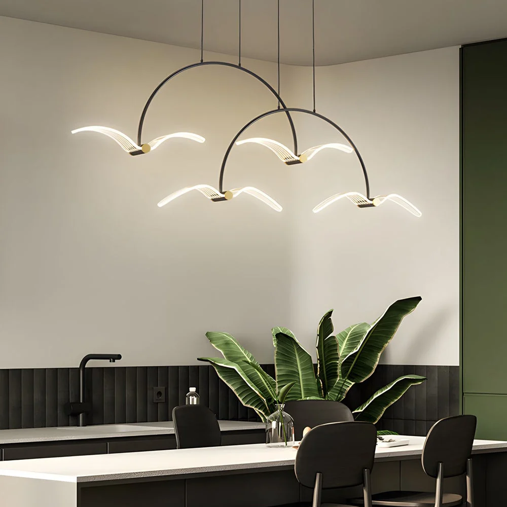 • The modern acrylic chandelier features a modern design inspired by seagulls, creating a sense of movement and grace in your living room or dining room. The seagull-shaped acrylic shades add a touch of whimsy and movement to any room, making it a standout piece in your home decor.