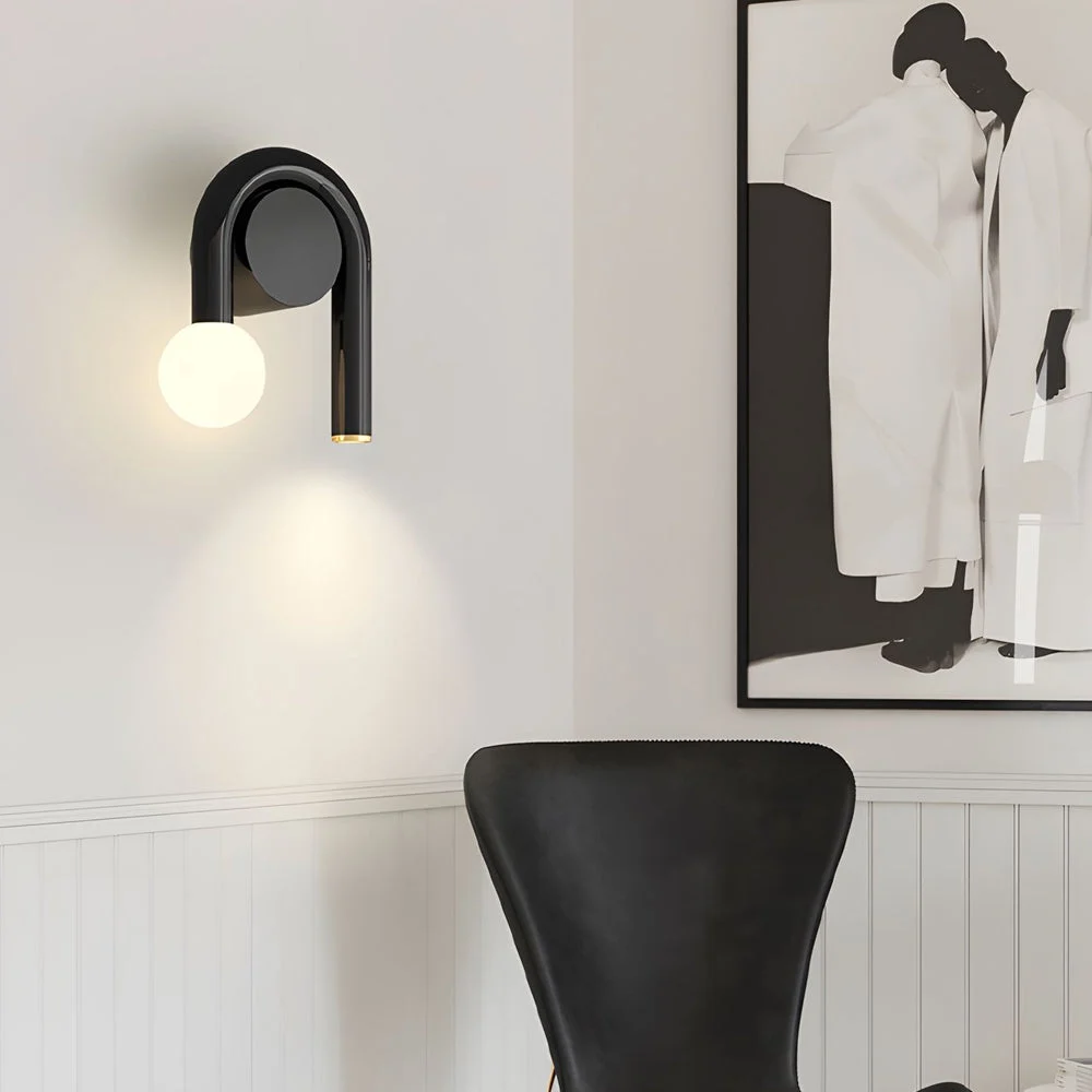 • This 2-light U-shaped line wall sconce features a unique arching tube form, with one side sweeping lower than the other. Crafted from quality iron and aluminum and finished in matte sleek black or white, its base is round and it can be mounted directly on the wall to complement a variety of modern interiors.