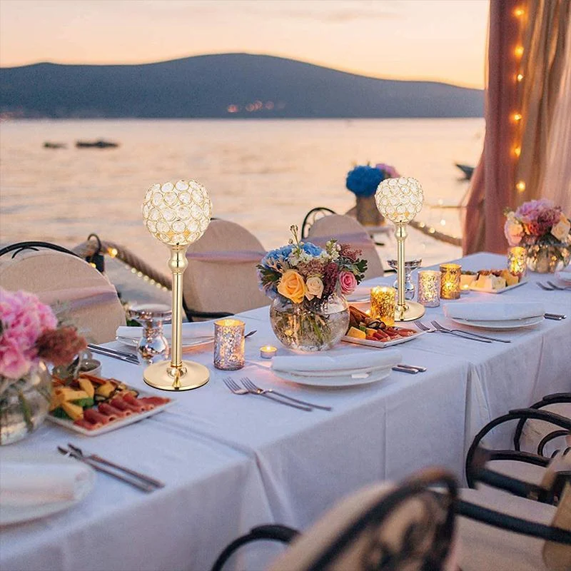 [Suits Any Occasion] The whole candle holder is stunning. It is suitable for flameless electronic candles and tea light candles. The crystals reflect light to provide a fantastic look during anniversaries, Thanksgiving, New Year, weddings, and parties.