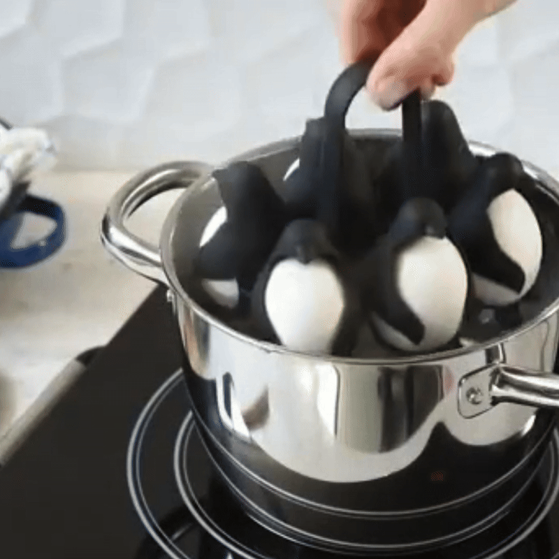 Who hasn’t tried it? Putting eggs into boiling water one by one, only to have to fish them out with great effort. With this practical penguin egg holder, you can boil up to six eggs at a time and put them in and take them out in one go – without any stress!