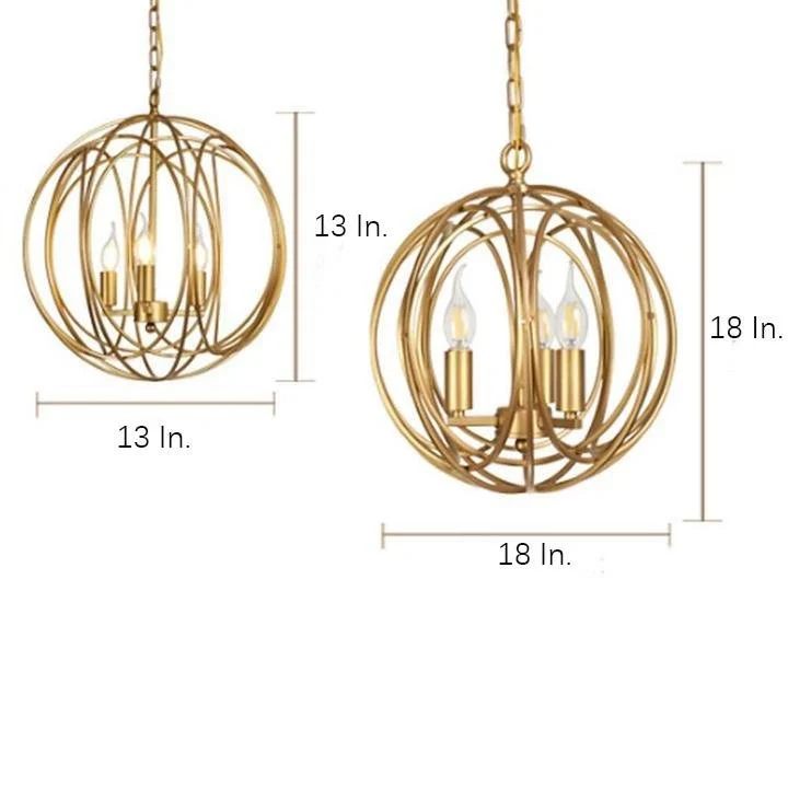 • This 3-light brass globe chandelier is a beautiful and sleek cage design to any home. The brushed gold finish gives it a classic, timeless look and is also luxurious, while the orb design adds a modern touch.