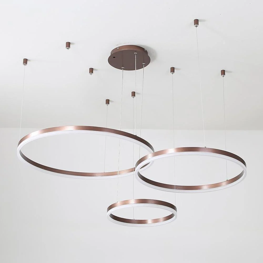 - This chandelier is composed of three rings with ultra-thin but strong metal hanging metal, looking like 3 rings chandeliers floating in the air as a whole as it’s the epitome of luxury and opulence. The length of the hanging chain can be adjusted. You can install it in different heights according to your own preferences, which will look more layered and artistic.