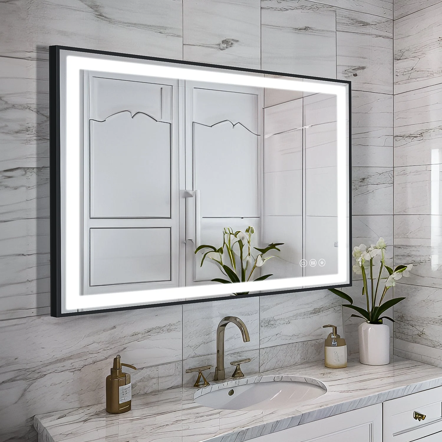 This dimmable LED bathroom vanity with mirror can be controlled with a circular touch button, and the mirror has a memory function that will return to its previous state of use when the power is turned off and on again.
