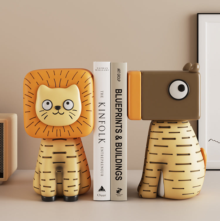 Abstract Cartoon Lion And Dog Bookends, Office Study Decorative Sculpture Ornaments