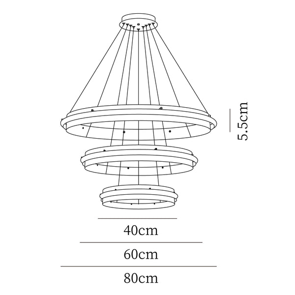 3 Tiers size: Dia 40cm + Dia 60cm + Dia 80cm / ∅ 15.7″+ ∅ 23.6″ + ∅ 31.5″ (Power~90W)