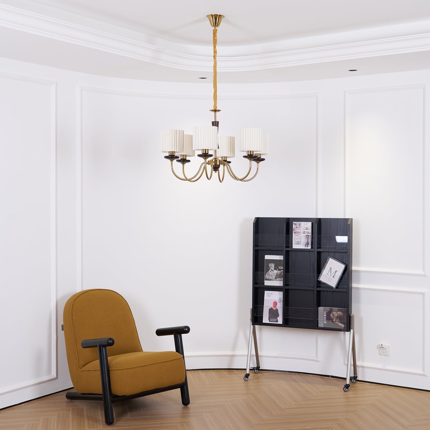 Add an elegant touch to your space with the Acurt Pendant Light. The pleated shade provides soft lighting, while the walnut body and copper curved arms add a touch of sophistication. Elevate your room with this stunning pendant light.