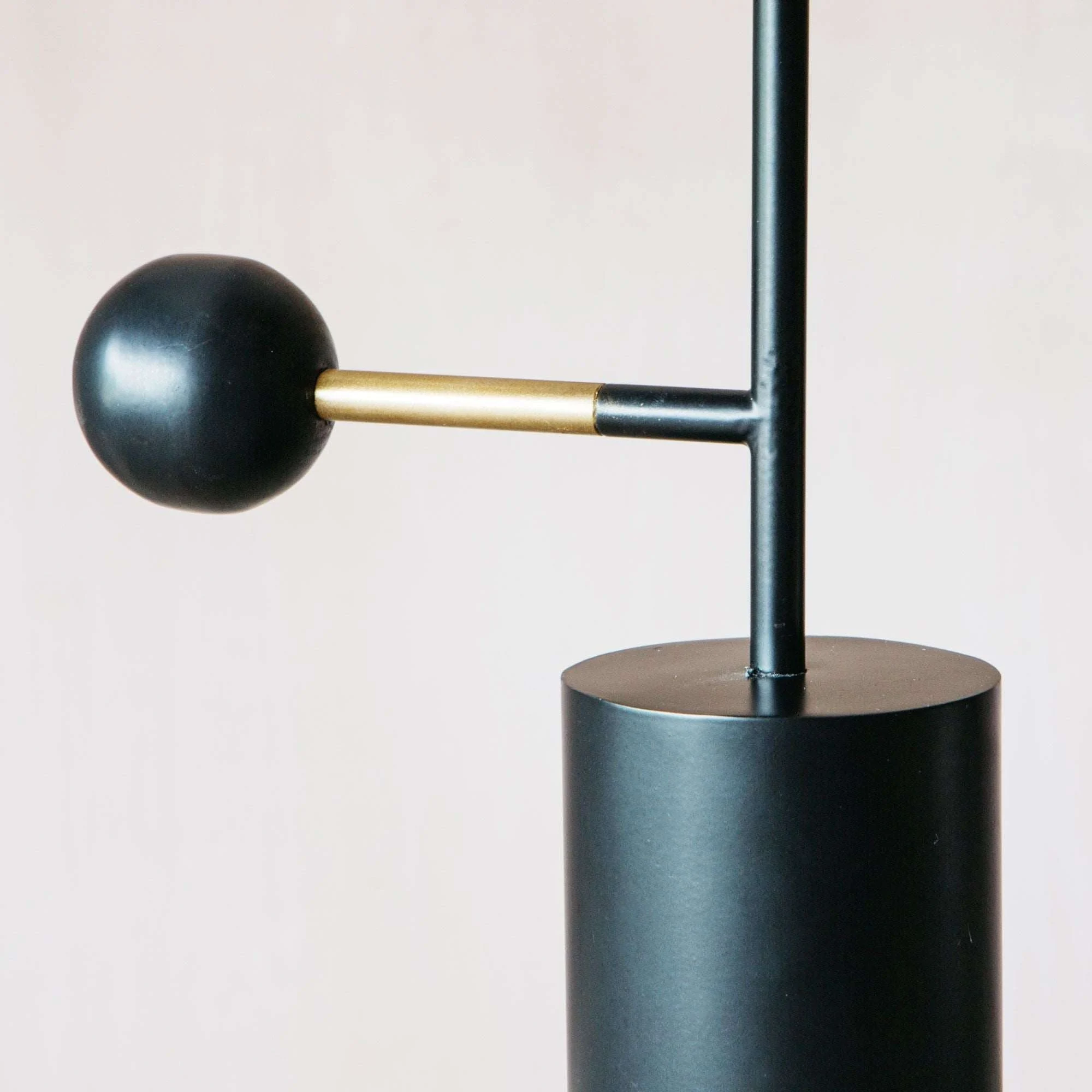 A mid-century design inspired by the space age of the fifties, this Adam Table Light is crafted from iron with a brass finish hood, matte black base and a celestial orb.