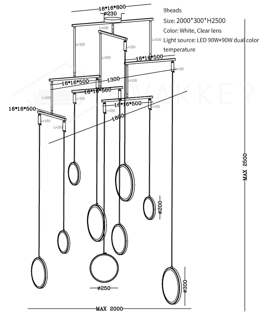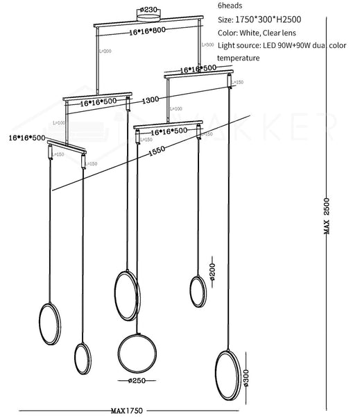 59″ Adjustable hanging height cable, which can be lengthened as required.