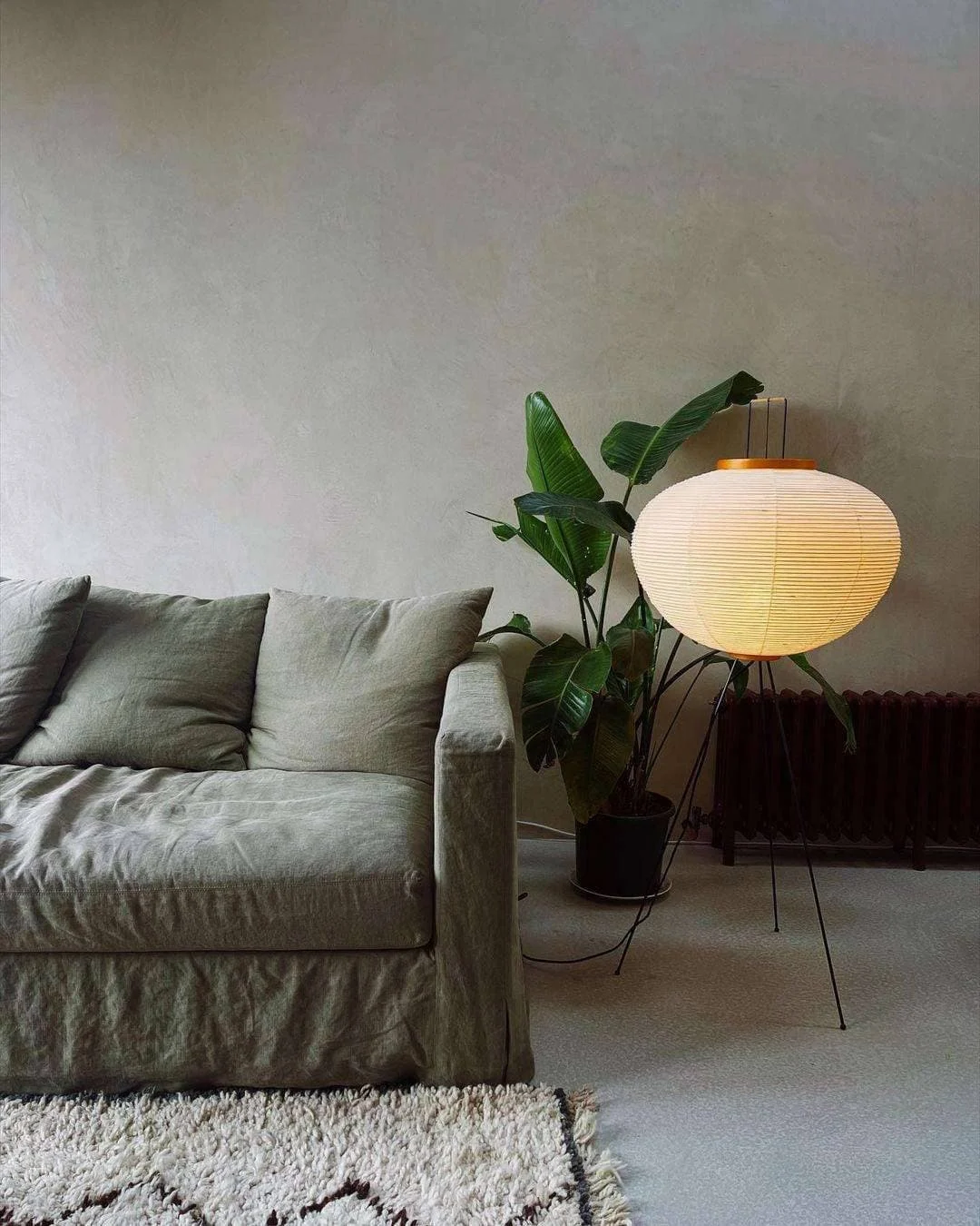 Akari Series Floor Lamp is part of the Akari light sculptures. He chose the name ‘Akari’ for these objects, a word that means ‘light’ in Japanese, connoting both illumination and physical lightness. The inspiration for the design of Akari lights stems from a visit to the Japanese fishing village of Gifu, where watched the fishermen at work. They not only use trained cormorants for the hunt but also lanterns to attract fish. These lanterns had ribs made of bamboo, which were covered with fine paper.