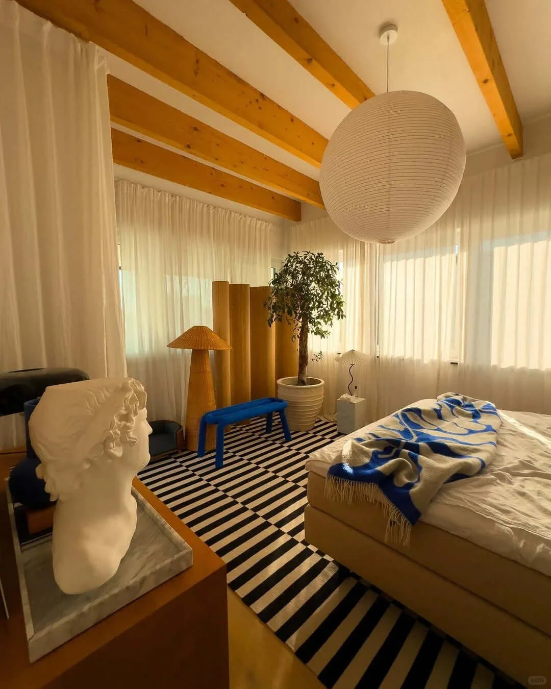 The Akari Sphere 120A Pendant Light epitomizes the elegance and simplicity of Noguchi’s design philosophy. This pendant light is constructed from washi paper and bamboo ribbing, offering a gentle, ambient light that enhances the beauty of any room. Its large size and minimalist design make it a stunning centerpiece that adds a touch of sophistication to any interior.