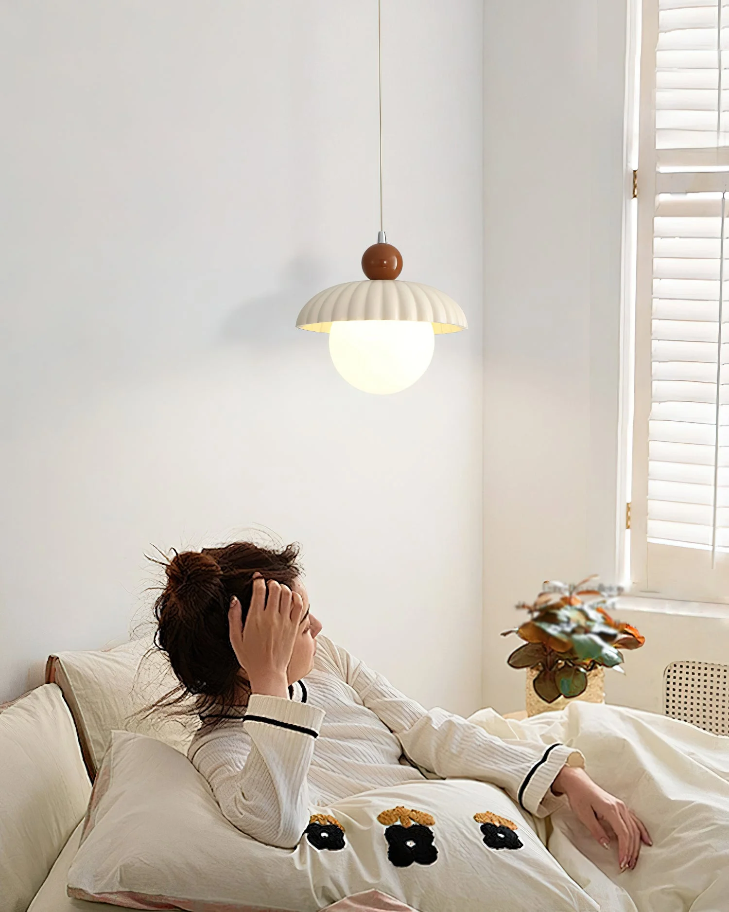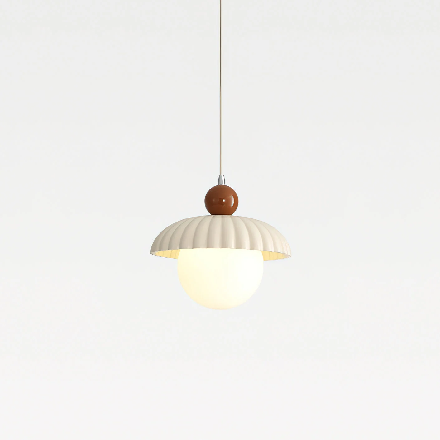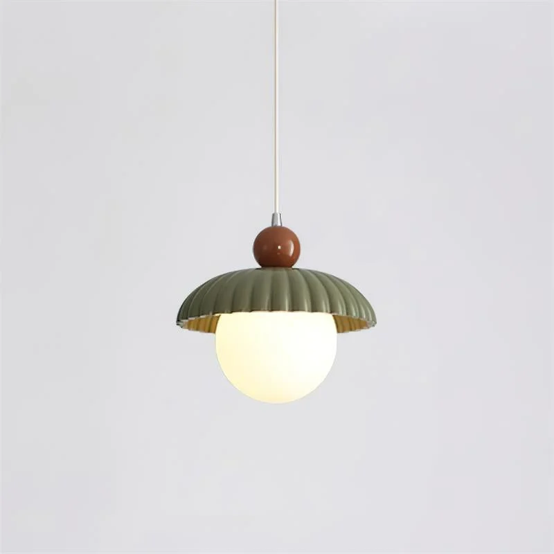 Illuminate your space with a touch of retro charm! This stunning Docos pendant light features a sleek, modern design with a green pleated shade and a warm, glowing orb at its center. The rich brown accent at the top adds a vintage flair, making it a perfect statement piece for both contemporary and traditional interiors.