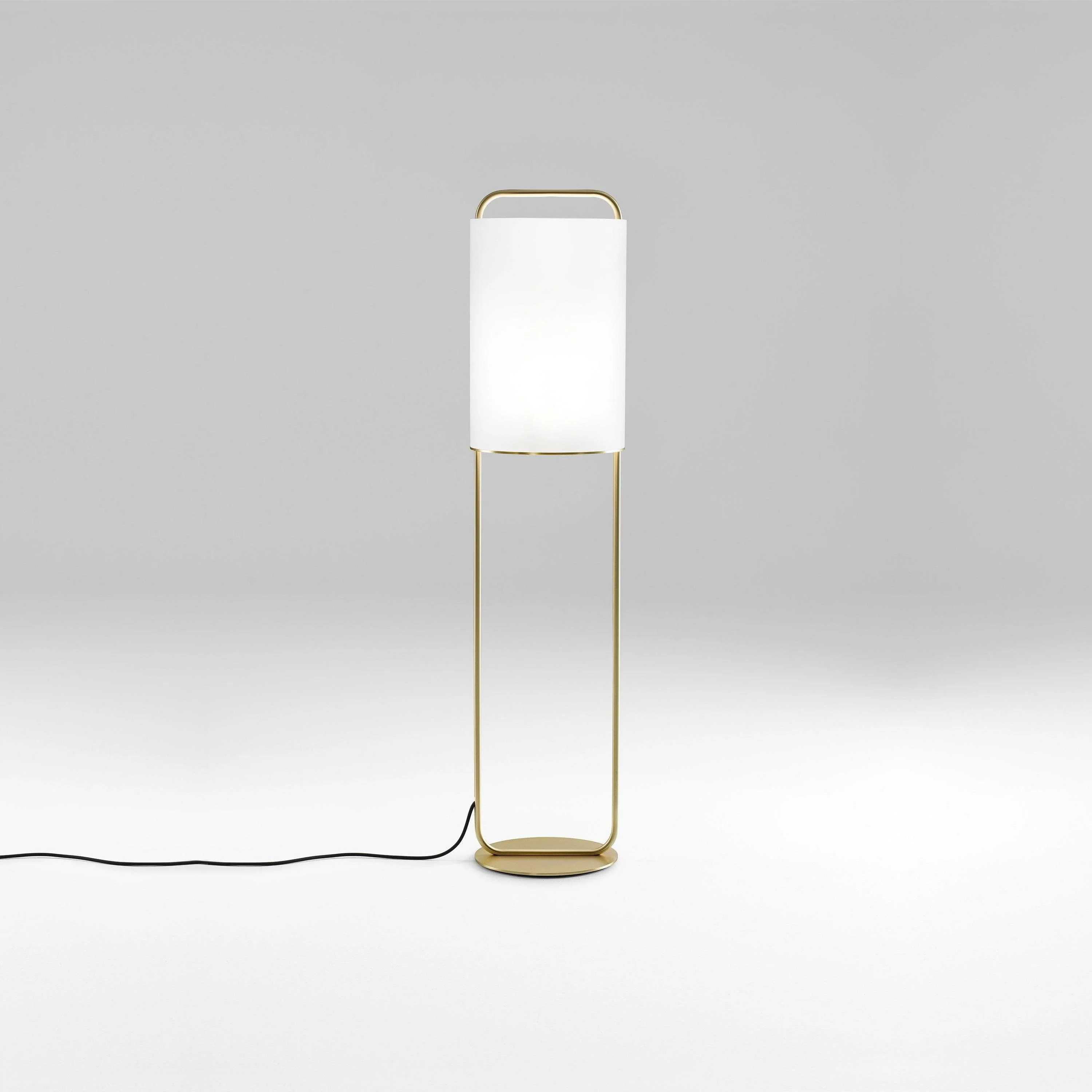 Alistair consists of simple geometric shapes, round bases, square frames, cylindrical diffusers and handmade fabric covers. This lamp is pure and beautiful, refined in gold and white.