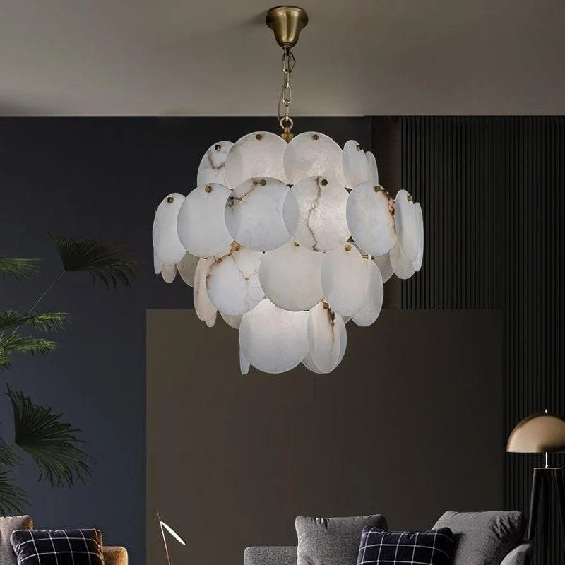 This meticulously crafted Marble Multi-Tiered Round Chandelier features marble magnolia petals and leaf-shaped metal accents, creating the perfect combination of elegance and romance. The multi-layered design casts warm ambient light for a truly luxurious feel.