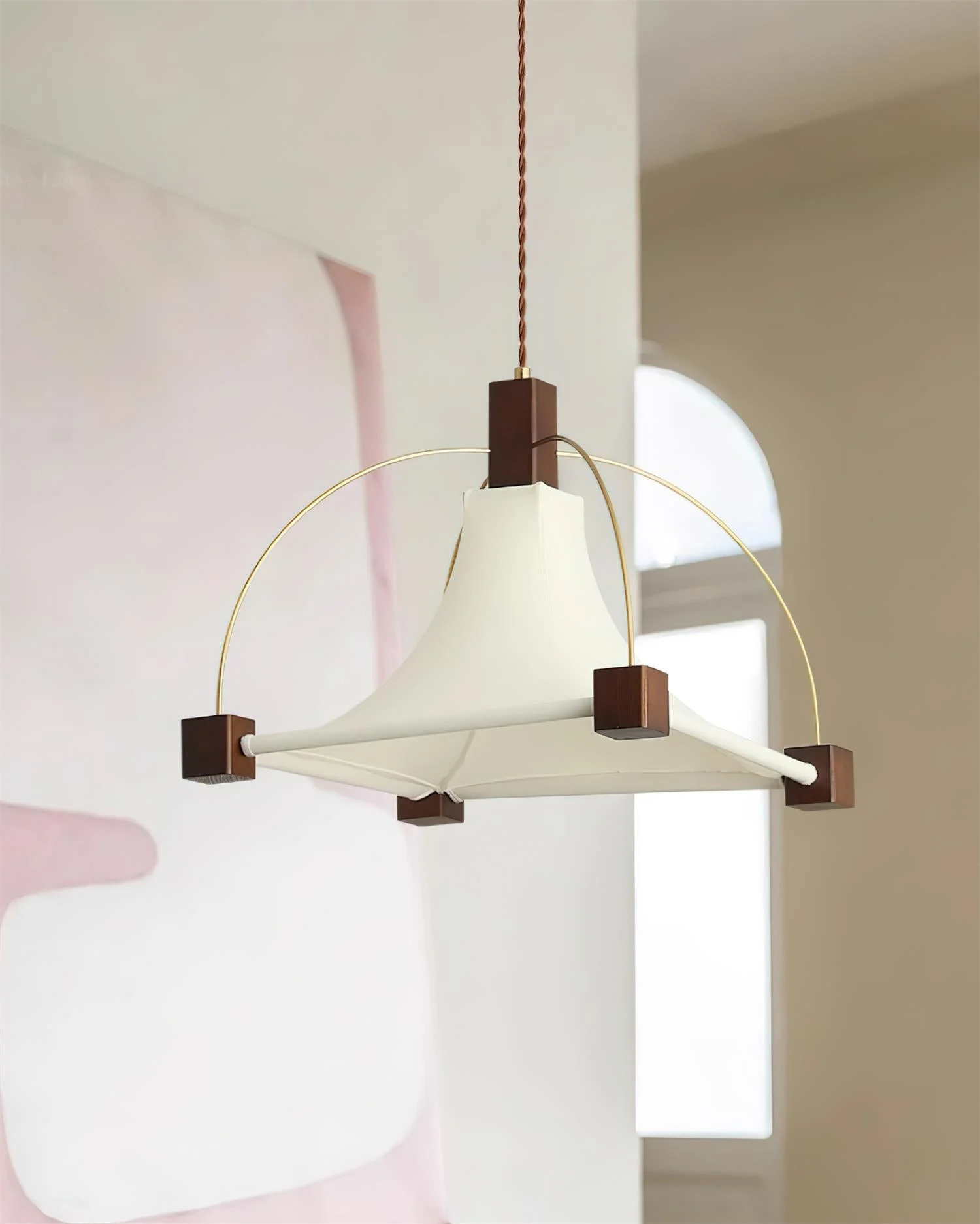 The Allegra Pendant Lamp by Doco captures a modern twist on classic lantern design, featuring a delicate fabric shade encased in a sturdy yet elegant frame. Its refined arches and wooden accents create a harmonious blend of softness and structure, casting a warm, ambient glow. The Allegra’s clean lines and subtle aesthetic make it an eye-catching addition that enhances the overall atmosphere of any interior with understated sophistication.