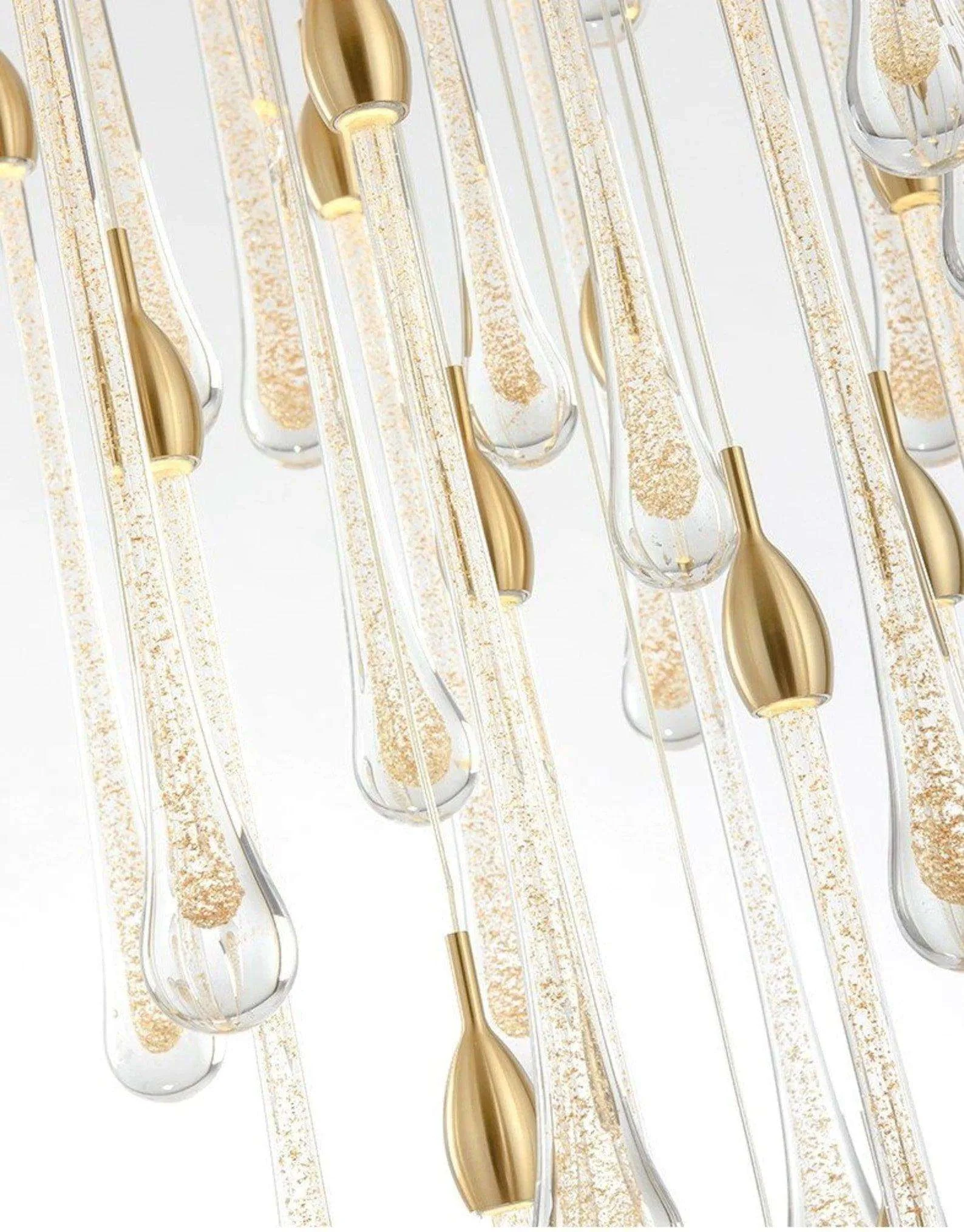 Allure Suspension Lampr is made of the famous Murano glass, hand-shaped and blended into gold leaf. Each glass element is suspended on a metal base covered with satin gold finish. The LED spotlight is integrated in the base, which can be oval or round.