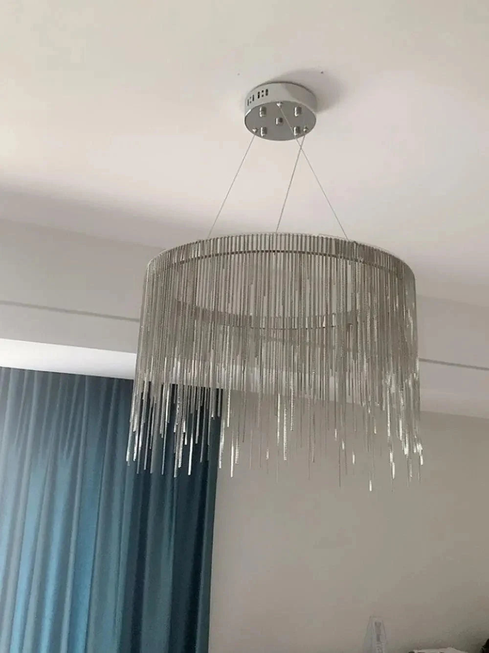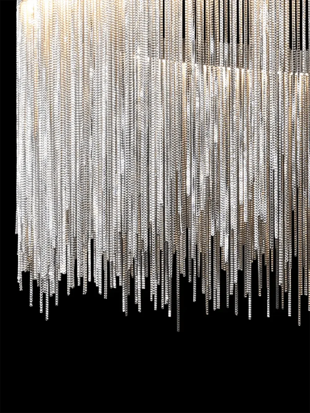 This collection is a flirty and delicate chandelier that will animate any space in your home. The jewelry grade silver chain is wrapped around the polished frame in several eye-pleasing designs.