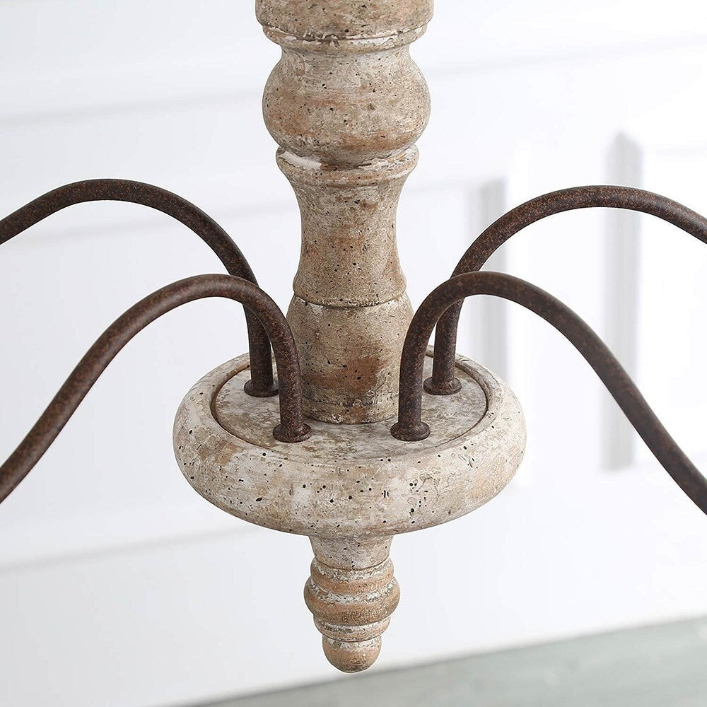 The french country chandelier evokes a timeless feeling of past empires, while the finishes bring it into contemporary times. This chandelier is a perfect combination of natural wood and iron, every part is completely handmade, and the bases are designed to resemble candles which can be installed with 5 light bulbs to provide a beautiful appearance and satisfy the requirement of illumination.