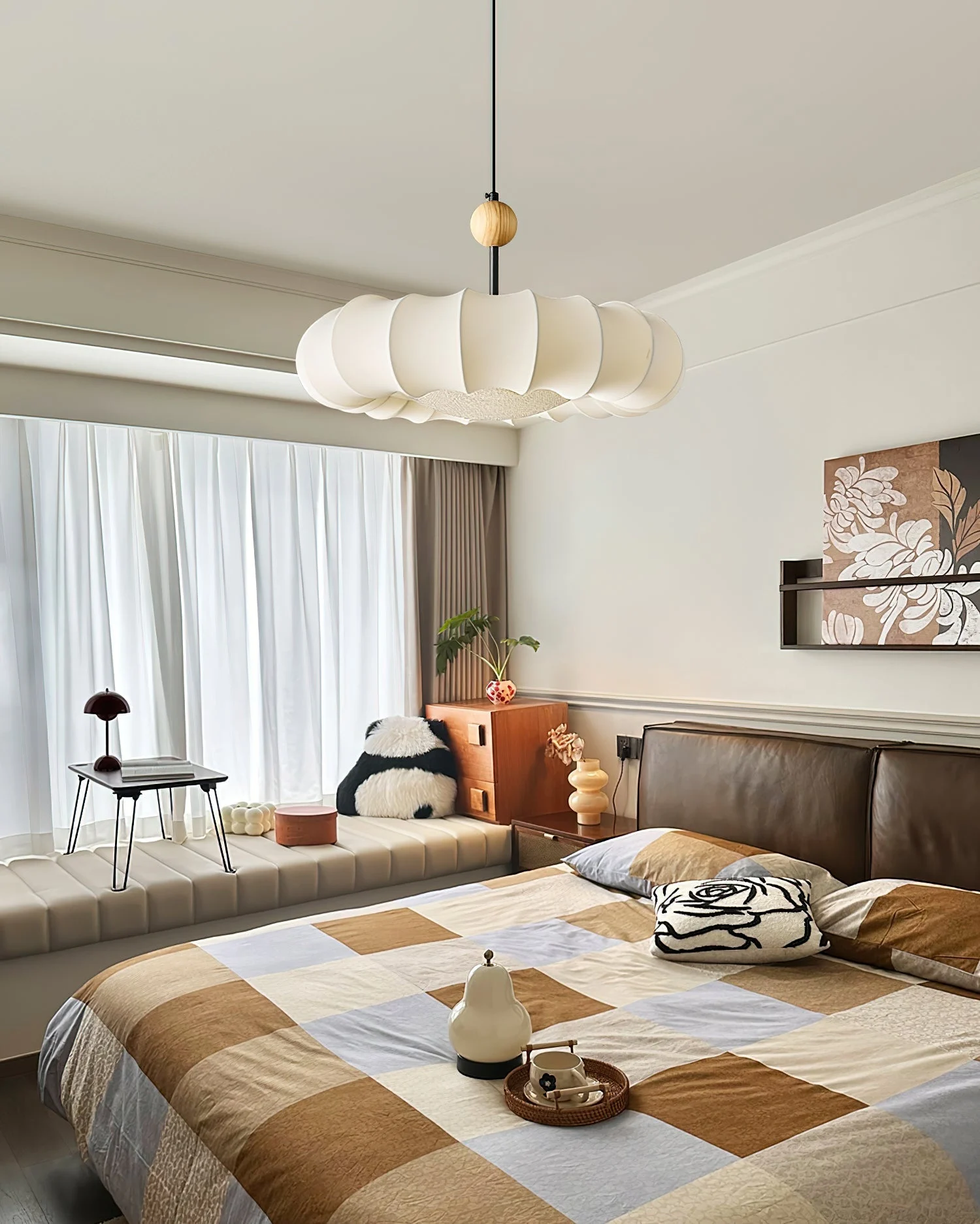 This exquisite luminary showcases a series of fabric lampshade, each meticulously crafted to cascade in harmonious layers. Anchored by a wooden bead, the Anela Pendant Lamp combines rustic charm with contemporary design, making it a perfect addition to both modern and classic interiors. Its design not only illuminates spaces but also serves as a focal point of artistic expression.