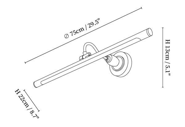Size: Dia 75cm x H 13cm / ∅ 29.5″ x H 5.1″, Depth from wall Size: H 22cm / H 8.7″