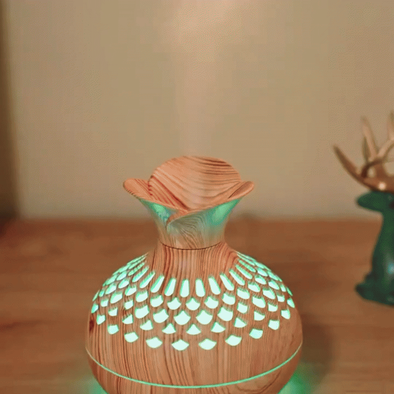 Aromatherapy Humidifier with Led Diffuser in Wood Look & Night Light