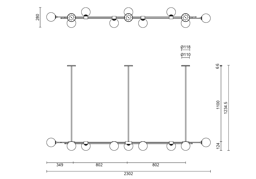 9-lights Size: Dia 230cm x H 124cm / ∅ 90.1″ x H 48.8″