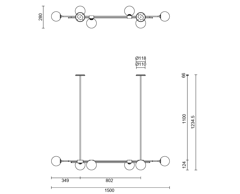 6-lights Size: Dia 150cm x H 124cm / ∅ 59.1″ x H 48.8″
