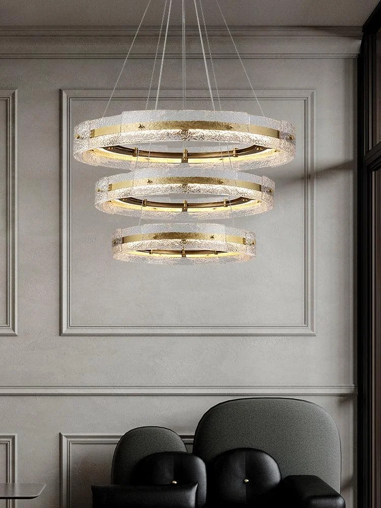 Crafted with the utmost attention to detail, this Asta – Gold Chandelier has a contemporary style that easily blends into any interior design. The clear glass stone reflects LED bulbs beautifully, creating a captivating light effect that enhances the ambience of any room.