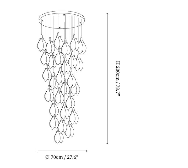 28-lights A Size: Dia 70cm x H 200cm / ∅ 27.6″ x H 78.7″ (G4 bulbs x 28 Pieces) (Power: ~140W)