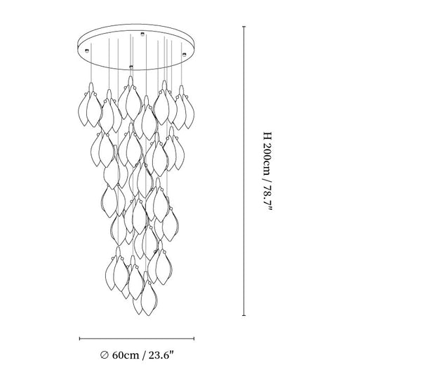 16-lights A Size: Dia 50cm x H 200cm / ∅ 19.7″ x H 78.7″ (G4 bulbs x 16 Pieces) (Power: ~80W)