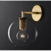 The wall lamp series of our elegant collection of “Aure – Armed Retro Wall Lamp”, inspired by Art Deco. These wall lamps come with various forms of glass or bare lampshade so that you can complement it with your favorite light bulb. Choose from several different styles made from pure brass.