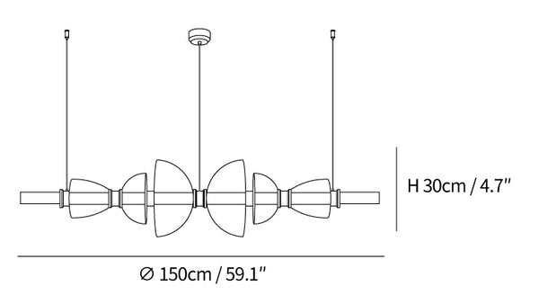 59″ Adjustable hanging height cable, which can be lengthened as required.