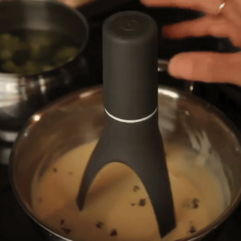 With this automatic stirring spoon, you finally have your hands free to concentrate on other cooking tasks while the spoon stirs for you. The ergonomic shape ensures maximum comfort, and the non-slip base guarantees safe working without having to worry about the spoon tipping over.