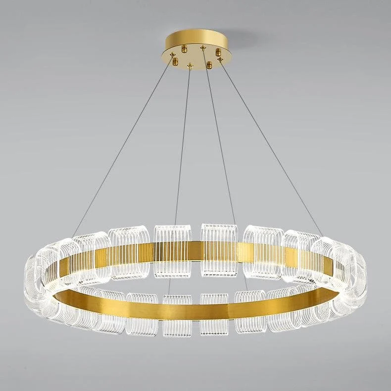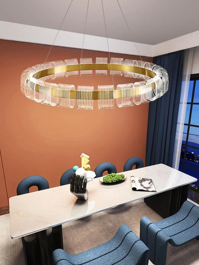 Reminiscent of a classic diamond tennis bracelet, this Bangle Chandelier adds a touch of modern elegance to any space. Integrated LED lights refract through clear acrylic to create beautiful ambient light, while cleverly concealed downlights provide additional task lighting.