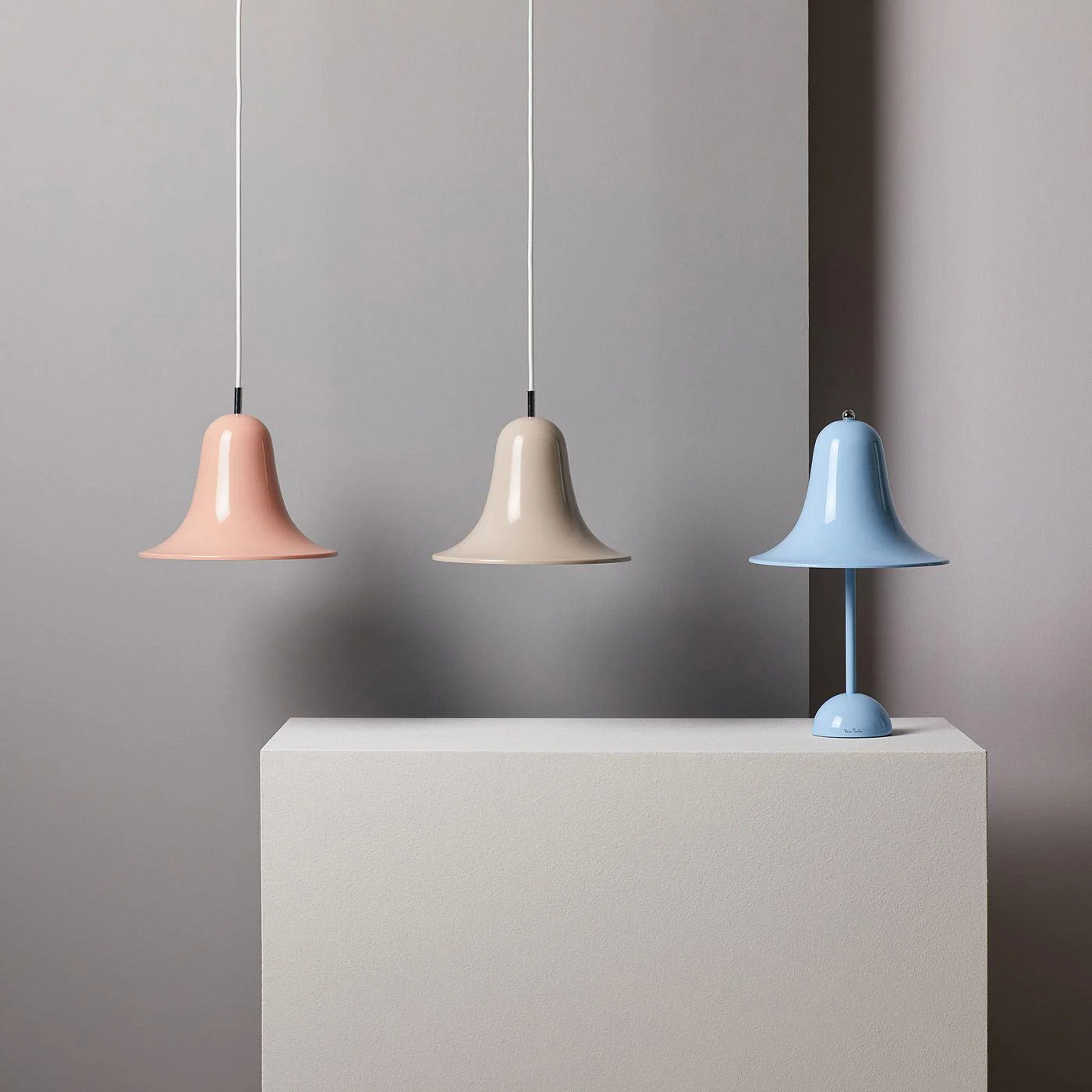 Bells Pendant Lamp is one of iconic designs. The lovely pendant lamp was designed in the 1980s and clearly reflects Bells famous style and playful expression. The arched lampshade and its wide opening ensure an ideal distribution of light.
