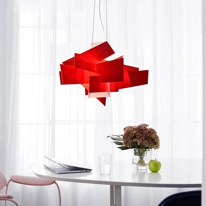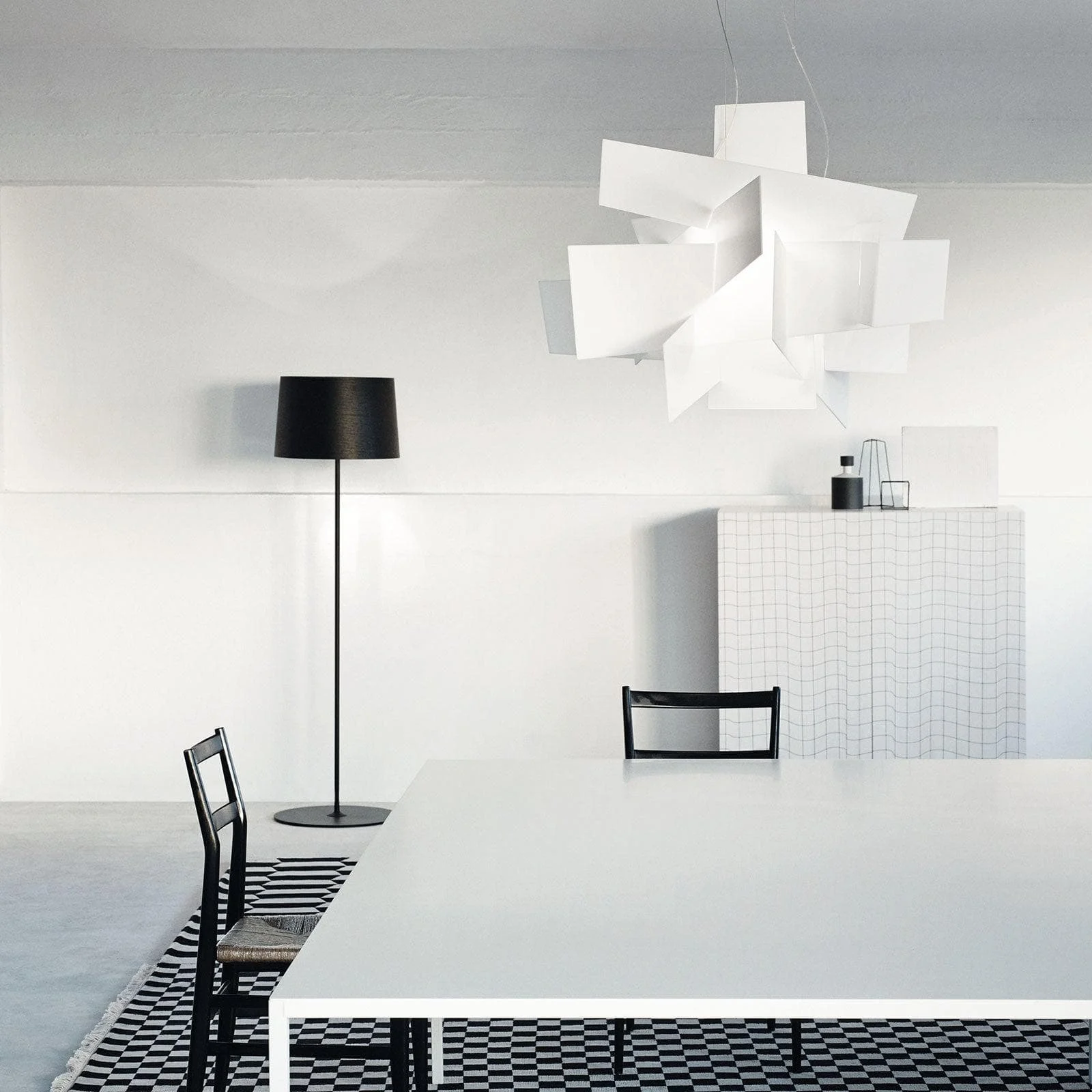 The Big Bang pendant light hanging lamp, which Vicente García Jiménez and Enrico Franzolini developed for Foscarini in 2005, is a tense chaos of emptiness and matter, of surfaces, corners and edges, of light and shadow.