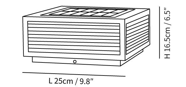 Solar-Powered Version Size: L 25cm x W 25cm x H 16.5cm / L 9.8″ x W 9.8″ x H 6.5″
