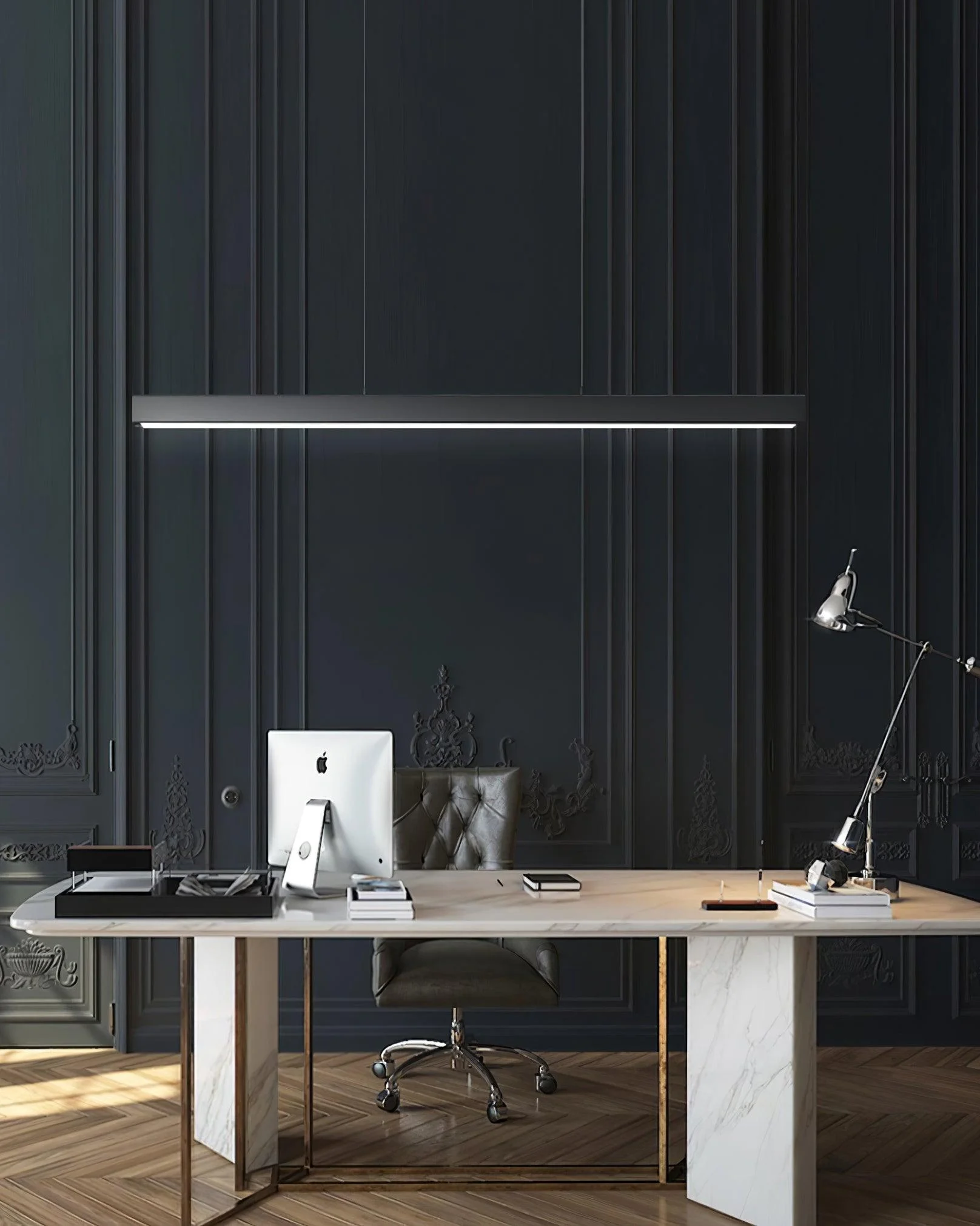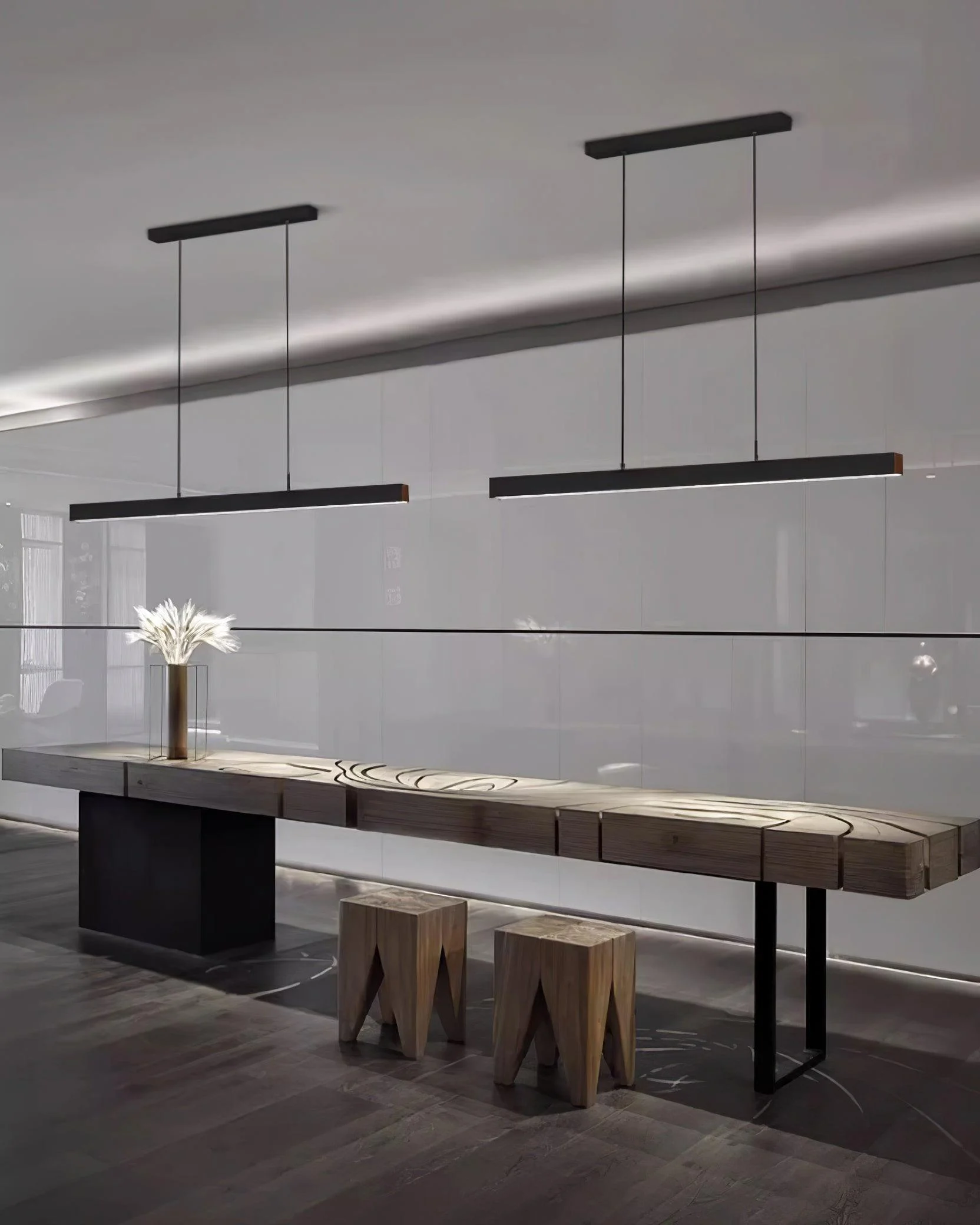 Experience the perfect balance of nature and modernity with this designer Black Linear Pendant Lamp. Constructed of cool metal and warm wood, it features an LED light source for a bright, energy-efficient glow. Crafted with years of woodworking expertise, this statement-worth piece adds flair to any modern space.