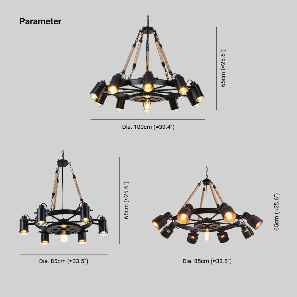 Black Wheel-Shaped Multi-Bulb Industrial Pendant Light