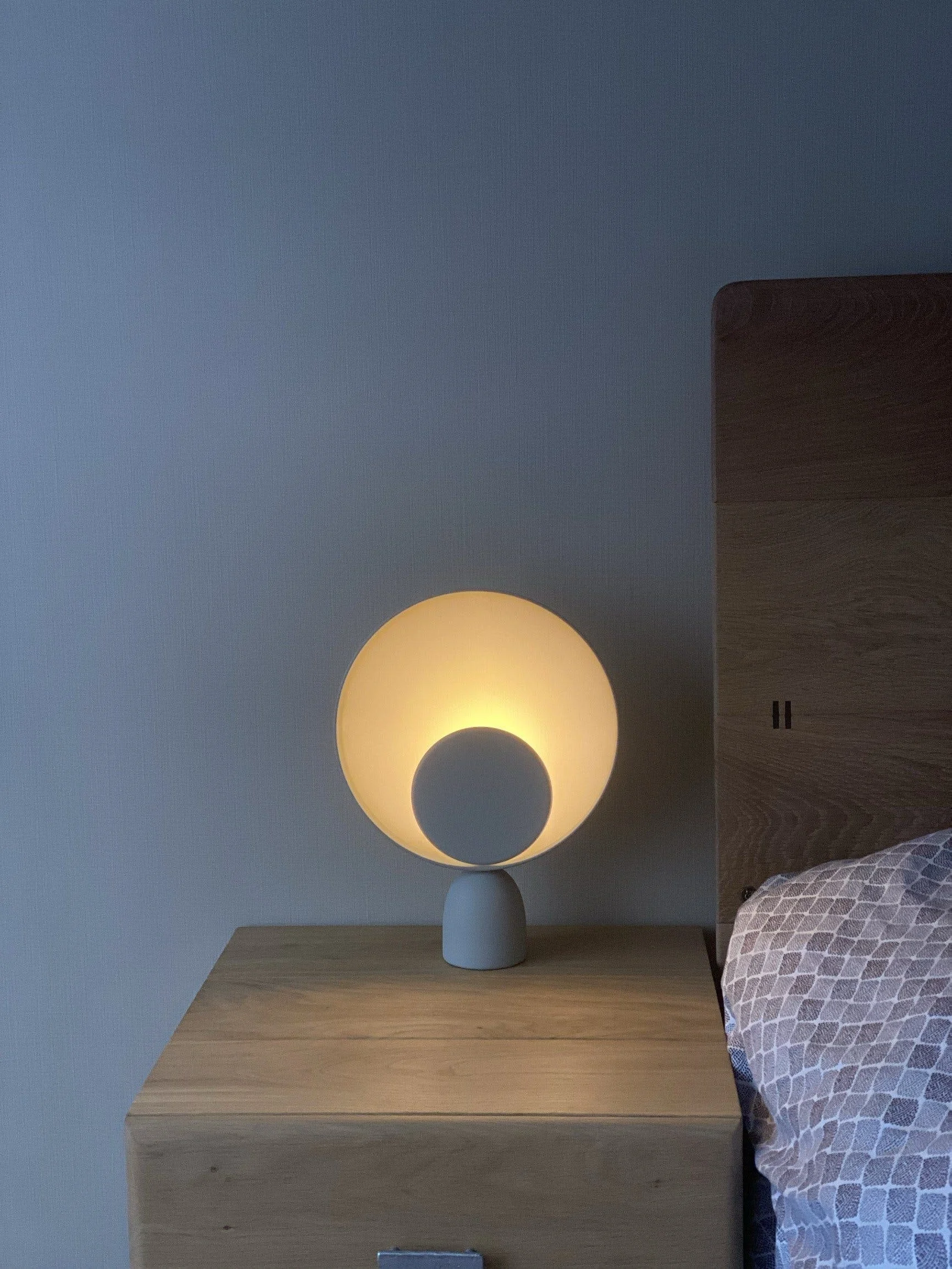 This cheeky table lamp is just asking to be touched. We think it looks like a shepherdess or an angel. Or an oyster. A classic, simple expression. Definitely a ‘she’. As with all our designs, tactile interaction is key. The soft light from the hidden LED bulb reflects off the inside of the bowl.
