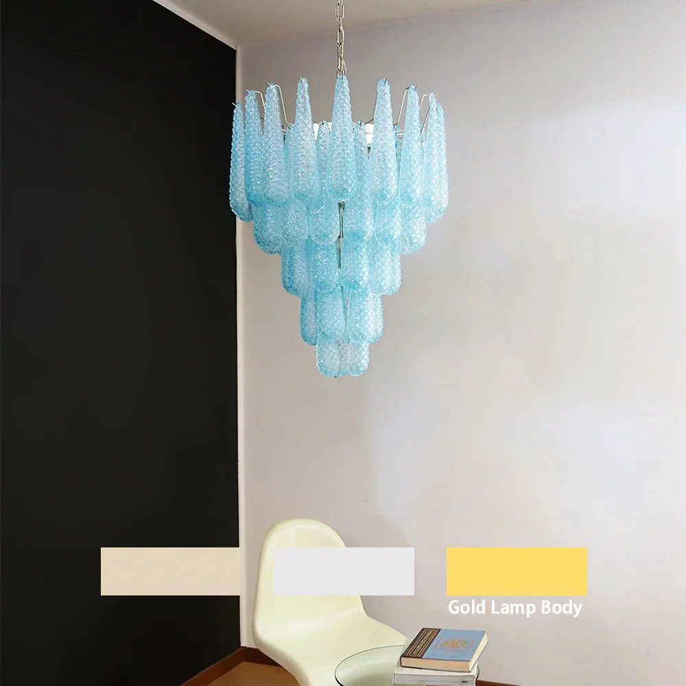 Bring a touch of elegance into your living space with our Blue Murano Glass Petals Chandelier. Hand-crafted with vintage Murano Blue glass, this stunning chandelier combines art and illumination to create a captivating statement piece. Add refined beauty and grace to any room with this unique chandelier.