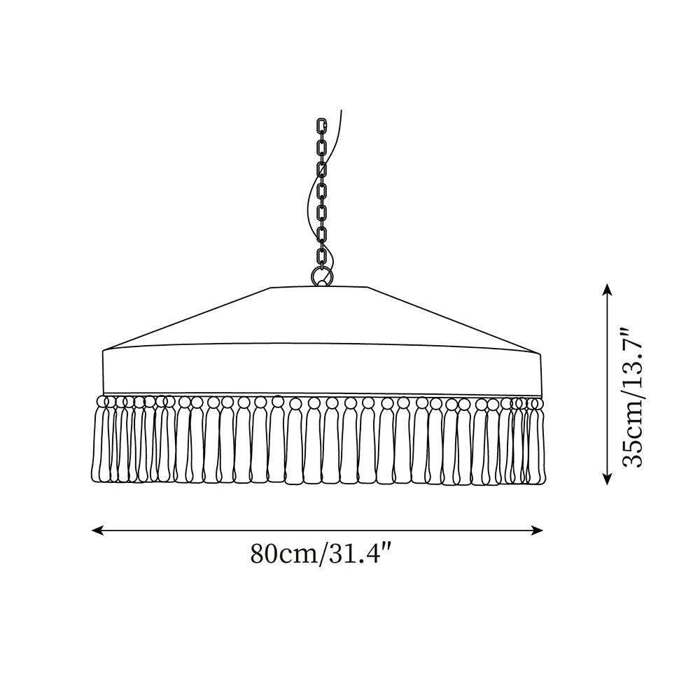 The Bohemian Fringe Pendant Lamp this handcrafted lighting fixture weaves together the free-spirited allure of Bohemian style with contemporary design. The shade boasts an elegant flat-topped conical shape, adorned with handwoven fringes that are pleasing to the touch. Its soft beige palette and the natural texture of the fabric allow for a warm and charming diffusion of light, creating a welcoming and serene ambiance in any setting.