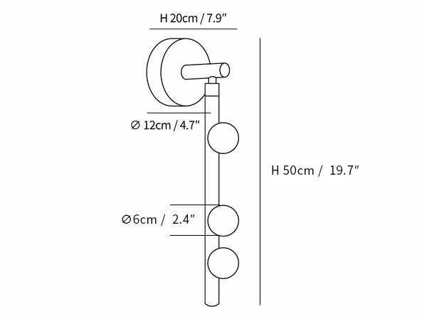 3 Heads Size: Dia 12cm x H 50cm / ∅ 4.7″ x H 19.7″, Depth: 20cm/7.9″.