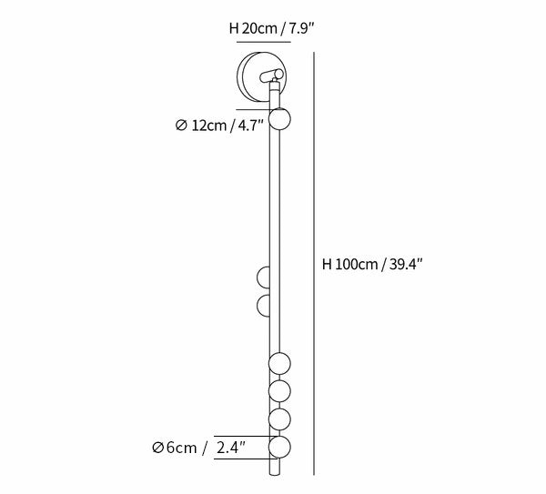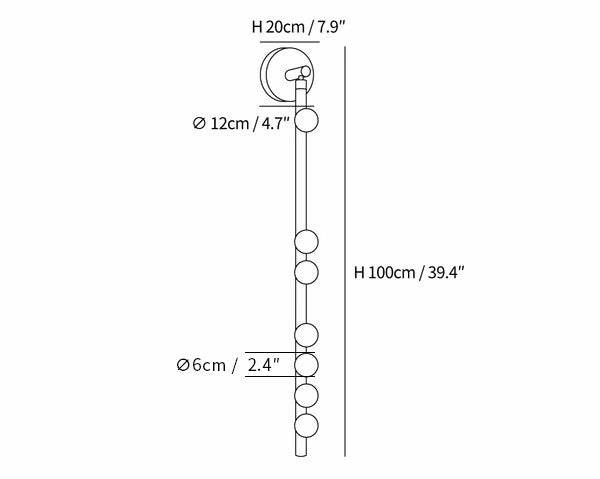 7 Heads B Size: Dia 12cm x H 100cm / ∅ 4.7″ x H 39.4″, Depth: 20cm/7.9″.
